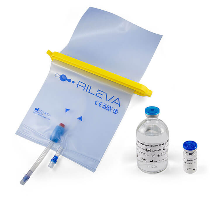 RILEVA infatti si compone di una sacca+clamp per la raccolta e la chiusura ermetica in campo sterile dei campioni da analizzare e di tutto il materiale necessario alla processazione della sacca con DTT in laboratorio di microbiologia.