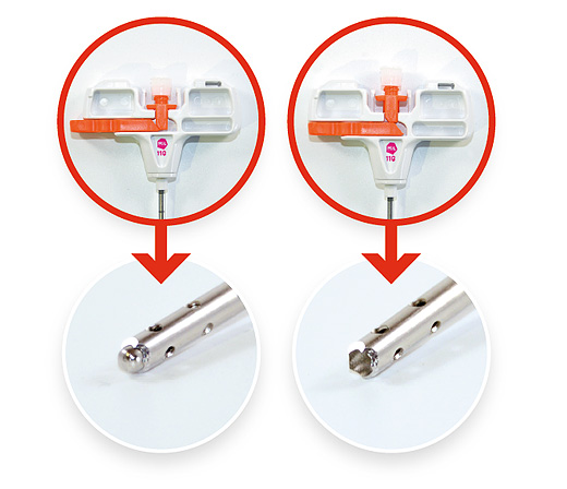 Tramite l’apertura alternata di 6 dei 12 fori presenti lungo il trocar, si consente l’aspirazione midollare a diversi livelli di profondità. Il trocar sfrutta un’area superficiale di aspirazione maggiore all’interno dello spazio midollare, con un unico sito di ingresso.